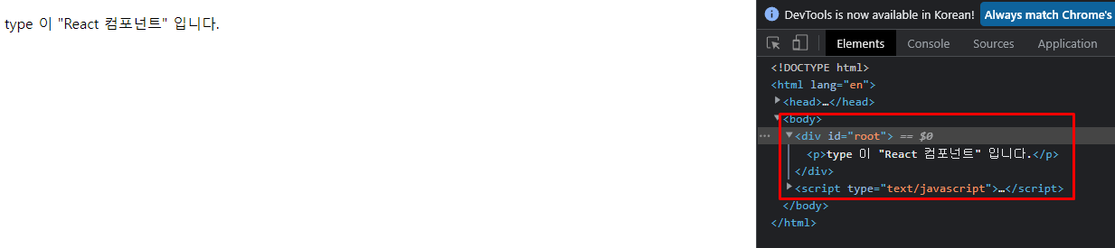 // return React.createElement('p',null,`type 이 "React 컴포넌트" 입니다.`);