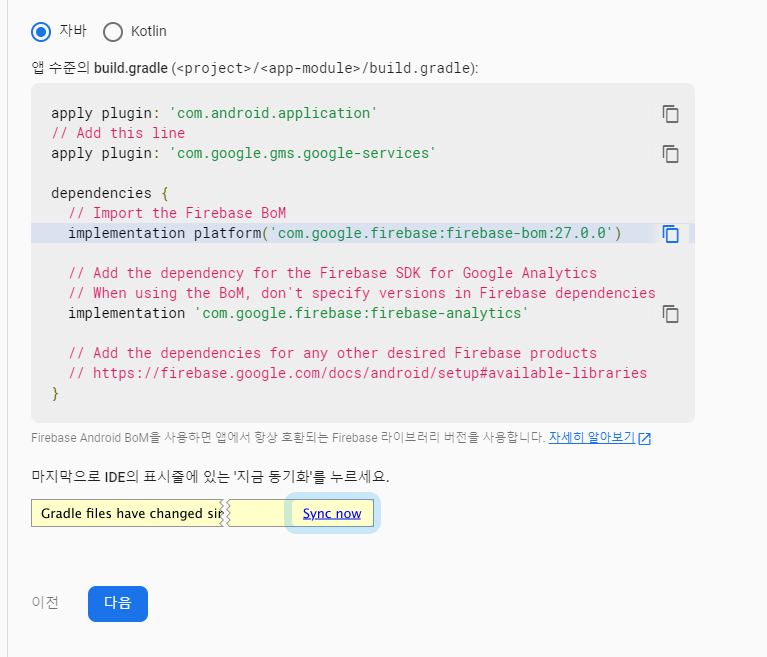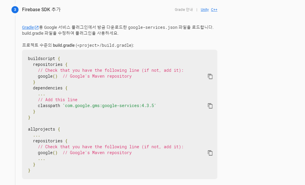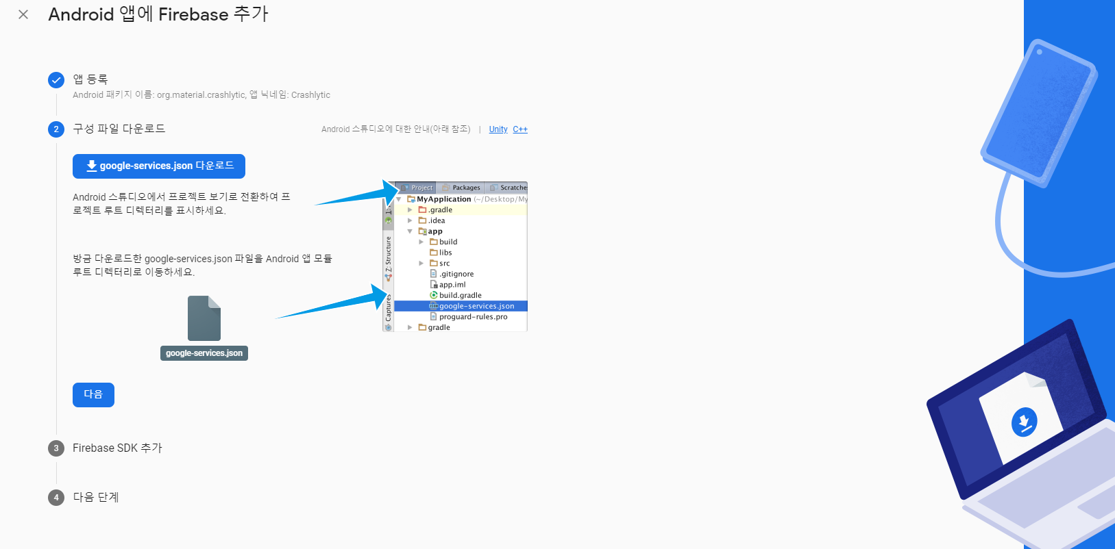 ▶ 화면에 맞춰서 google-services.json 파일을 삽입합니다.