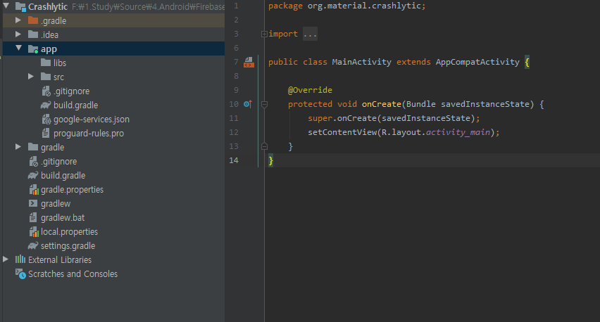 ▶다음과같이 코드를 작성하신후 Crash app을 클릭합니다.