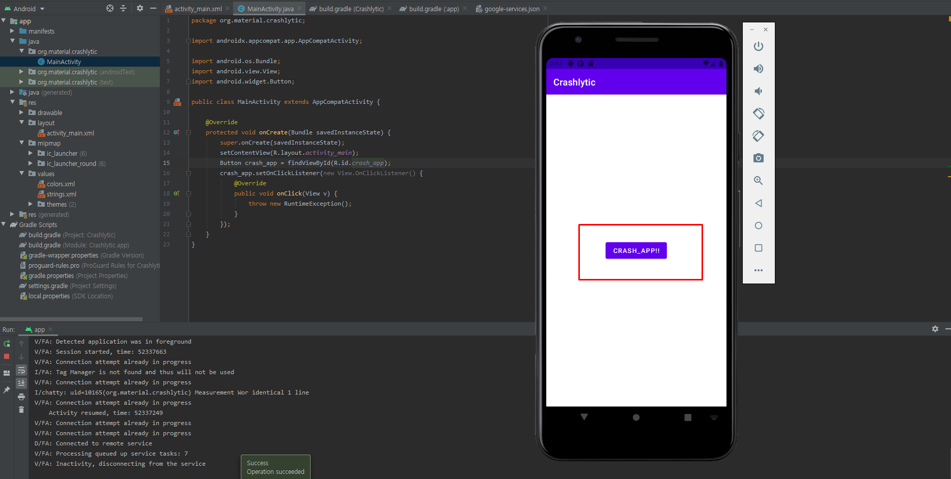 crash_app.setOnClickListener(new View.OnClickListener() {