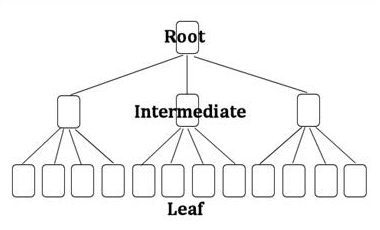 - 최상위 수준과 최하위 수준 사이를 '인터미디어트 레벨(Intermediate)이라 한다. 인터미디어트 레벨은 인덱스 크기에 따라 존재하거나 존재하지 않을 수 있다. 인터미디어트 레벨에 새로운 인터미디어트 레벨이 추가되는 것은 생각보다 쉽게 발생하지 않는다. 엄청난 양의 데이터가 추가되어야 인터미디어트 레벨이 하나 추가된다.'