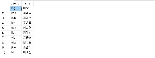 - 여기서 userid = KHJ, name = 김현중, arr = 서울행이 추가된다고 생각해보자.